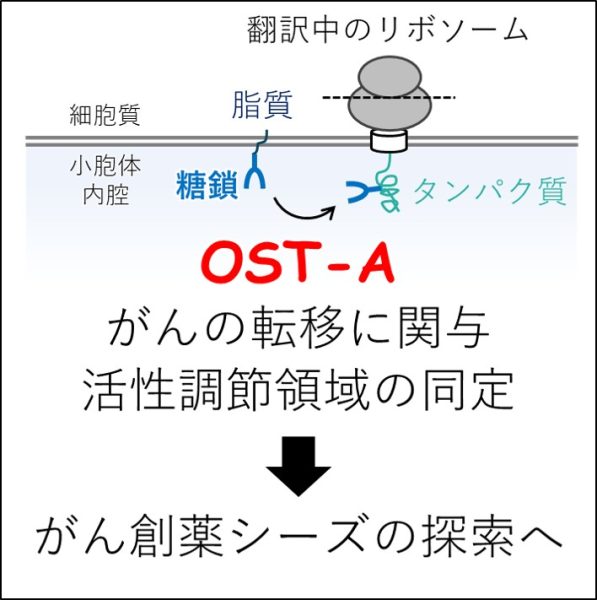 OSTは、小胞体と呼ばれる細胞内の構造で働き、タンパク質の機能を調整する「N結合型糖鎖修飾」を担っています。哺乳類では、OSTには性質の異なる2種類(OST-AとOST-B)が存在しますが、これらががんの進行にどのように関わるかは、これまでよく分かっていませんでした。